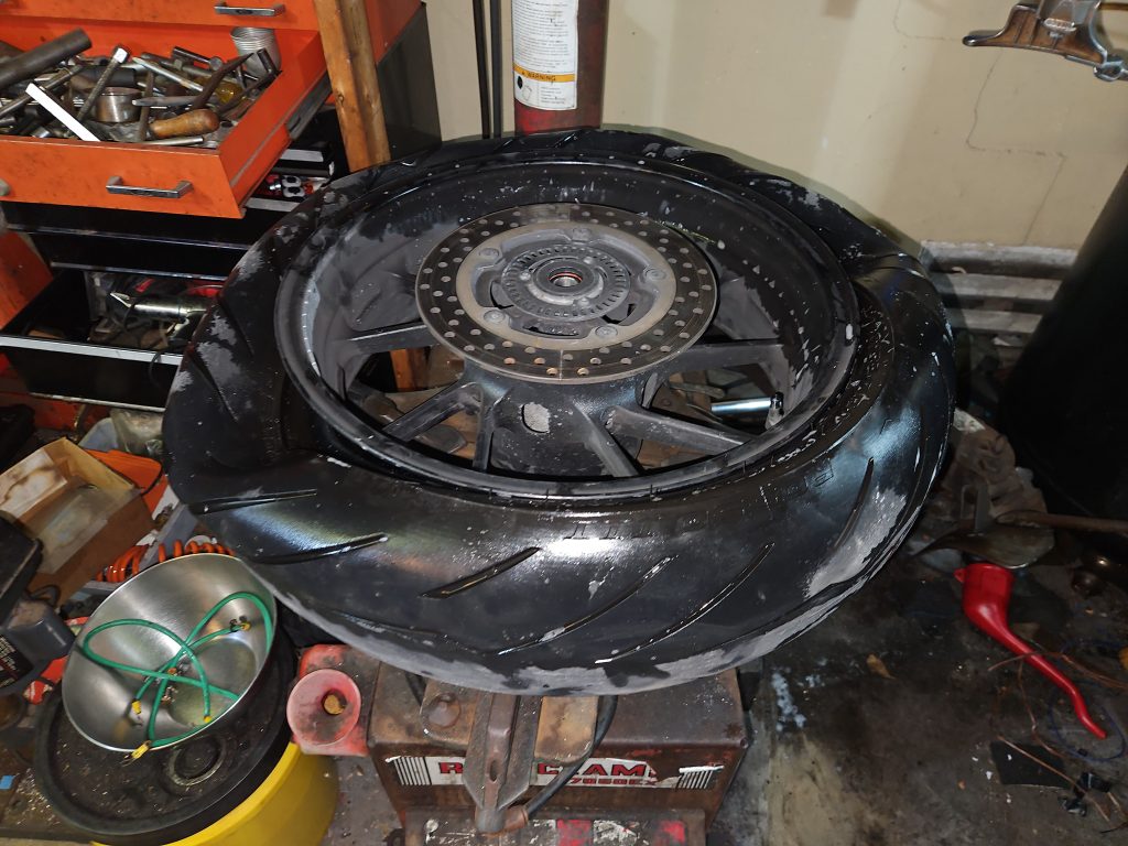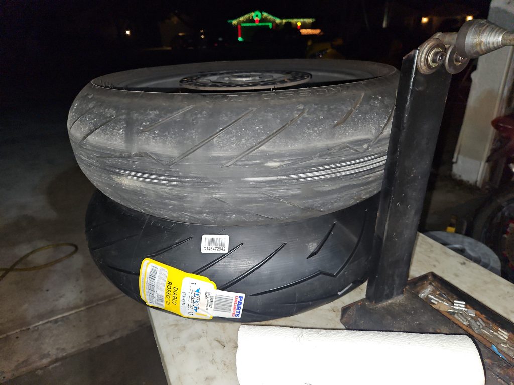Loose wheel change. Bad tire off, better tire on. Rim Swap.