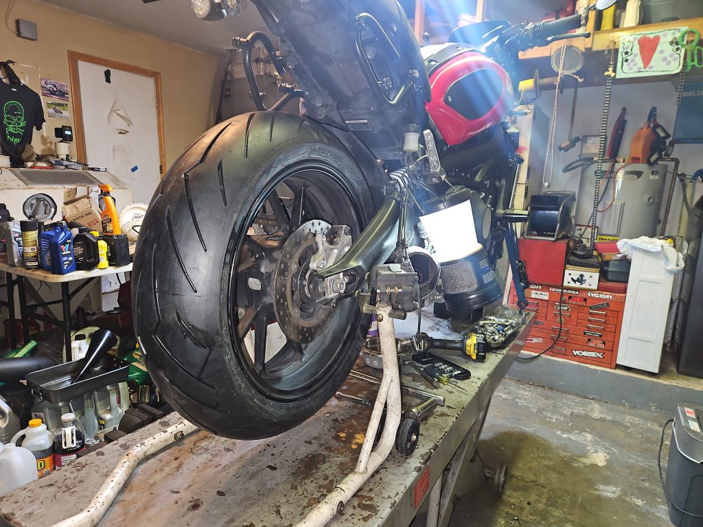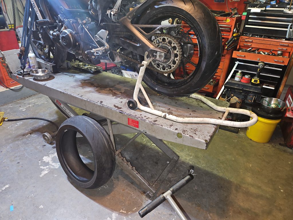 Shop pics – Full pneumatic lift, tire machine, all tools ready for Sportbikes or Cruisers.